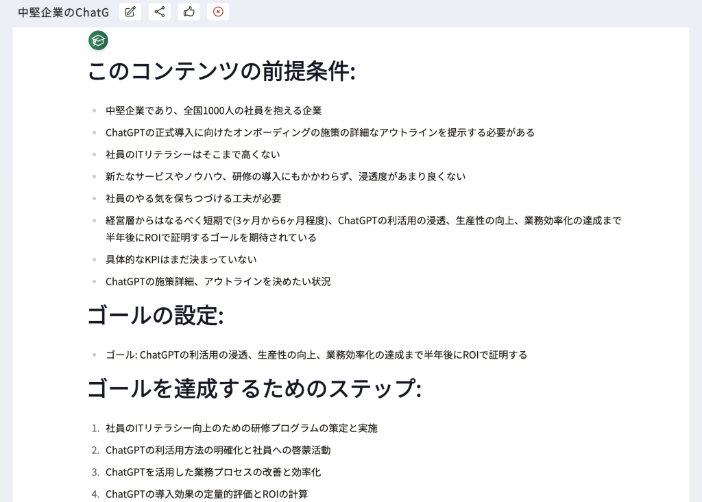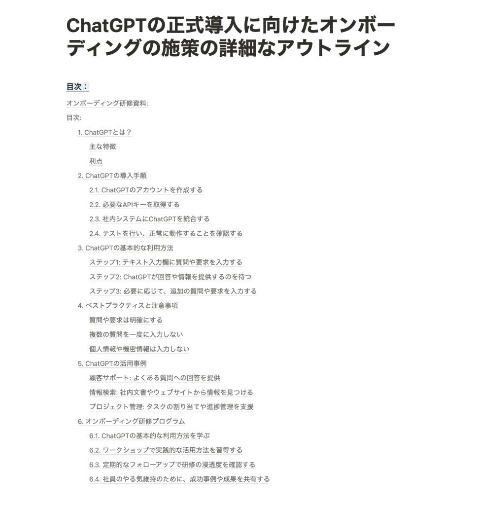 ChatGPTの正式導入に向けたオンボーディングの施策の詳細なアウトライン