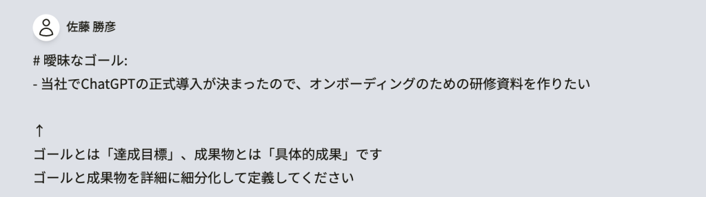 **「提案書を書きたい」**という曖昧なゴールを、具体的に解釈する際の