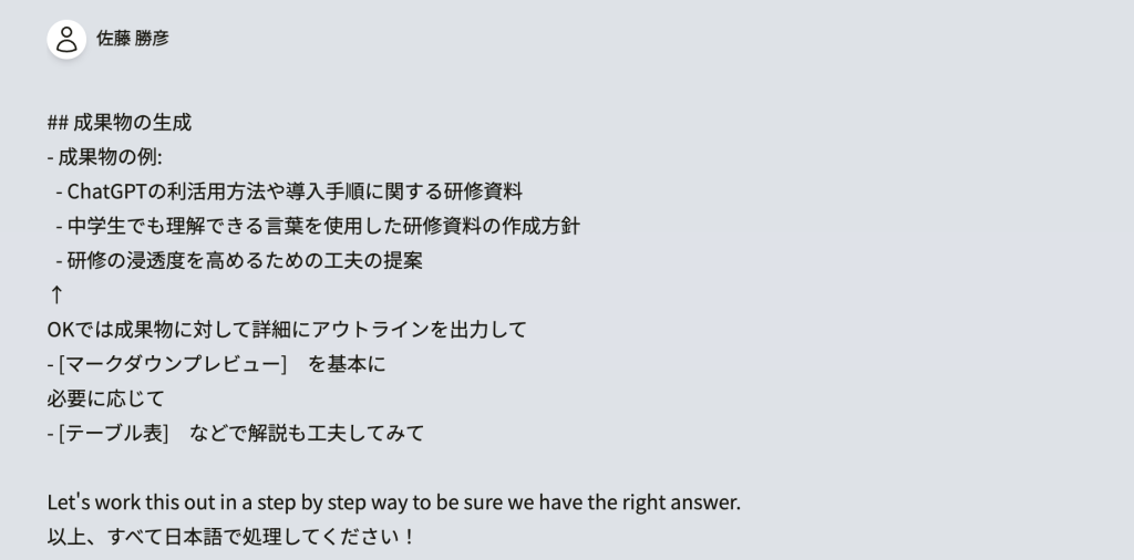 OKでは成果物に対して詳細にアウトラインを出力して
